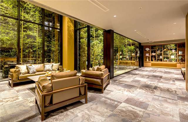 豊かな緑と陽光が広がり、5階ダイニングの窓に広がる砧公園の景観。エントランスには、住まう方々を迎える和の趣のある私庭。