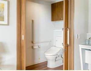 | 居室設備 | トイレ、エアコン、ナースコール、フローリング、フラットフロア、収納スペース、地上波アンテナ、引き戸式ドア(玄関)、温水洗浄機能付きトイレ、照明器具、玄関ディスプレイ、車椅子対応トイレ、車椅子対応洗面化粧台、鏡、防災設備、電気給湯器、電話回線 |