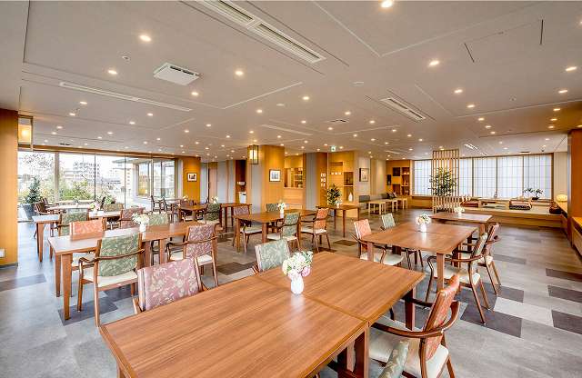 | 共有設備 | テラス、ロビー、フロント、エレベーター、ナースコール、スタッフルーム、一般浴室、介護浴室、個人用浴室、共用トイレ、厨房室、地域交流スペース、寝台用エレベーター、屋上施設、放送設備、機械浴室、汚物処理室、洗濯室、玄関ホール、理美容室、異常監視システム、自販機、談話室、車椅子用トイレ、避難設備、防災設備、風除室、食品庫、ダイニングルーム(食堂)、駐車場、駐輪場 |