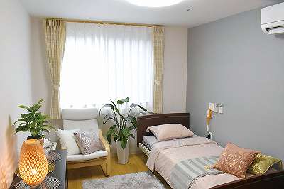 | 居室設備 | テレビ回線, エアコン, クローゼット, 防災設備, 空調換気設備, 照明器具, 電動介護ベッド, カーテン, 寝具, 洗浄機能付トイレ(車いす対応・緊急コール付), 車椅子対応洗面化粧台, 介護用電動介護ベッド |