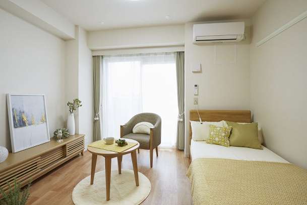 『エルダーガーデン 簗瀬』は、アクティブなシニアの方々にもご満足いただけるよう、お部屋は全て25㎡以上の広めの居室で、プライバシーに配慮された、安全で安心な空間を確保しております。