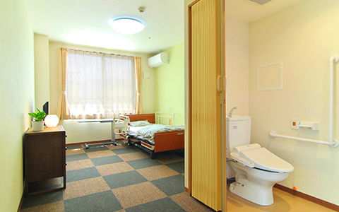 全室居室にトイレはもちろん洗面台やエアコン等も完備しております。緊急コールも備え付けなので、安心して毎日の生活を送っていただけます。