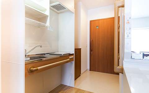全48戸の居室にはトイレはもちろん、浴室や洗面台、IH調理器等も完備しております。緊急コールも備え付けなので、安心して毎日の生活を送っていただけます。