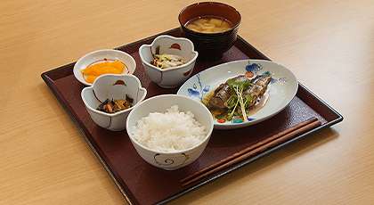 入居者様の健康の源となる食事を提供するにあたり、徹底した栄養管理と、こだわりの食材を使用し、調理・提供いたします。また、キザミ・トロミなどの食事形態、治療食、カロリー制限等、入居者様のご要望に応じて対応させていただきます。