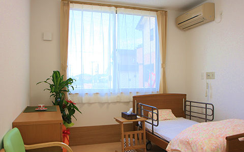 | 居室設備 | 電動介護ベット、ウォシュレット付きトイレ、エアコン、緊急コール、洗面台、防火カーテン、スプリンクラー、地上波アンテナ、照明器具 |