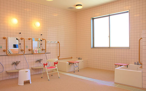 まるで陽だまりに抱かれているような光降り注ぐ空間は、お食事やレクリエーションなど、他の入居者様との交流を深める場となっております。個浴槽や機械浴槽も完備しており、安全に入浴出来ます。