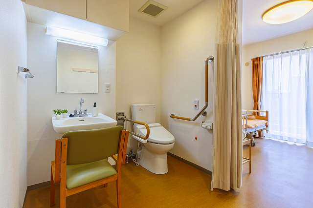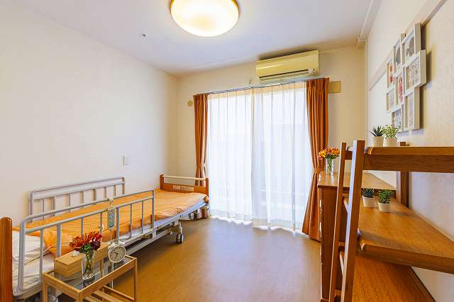 | 居室設備 | 電動介護ベット、エアコン、ウォシュレット付きトイレ、緊急コール、洗面台、収納棚、防火カーテン、スプリンクラー、地上波アンテナ、バルコニー、電話回線、照明器具 |