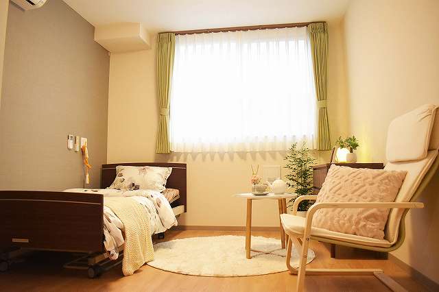 | 居室設備 | ALSOKセキュリティ, 緊急通報装置, テレビ回線, エアコン, クローゼット, 防災設備, 空調換気設備, 照明器具, 電動介護ベッド, カーテン, 寝具, 洗浄機能付トイレ(車いす対応・緊急コール付), 車椅子対応洗面化粧台 |