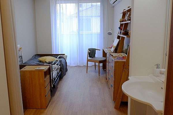 | 居室設備 | バリアフリー設計(手すり設置・段差なし)、温水洗浄機能付トイレ、エアコン、電動介護ベッド(寝具付)、カーテン(レースのみ)、ケアコール(ハンディコール)、洗面台、クローゼット |