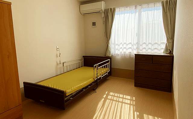 | 居室設備 | 介護ベッド、エアコン、クローゼット、ミニチェスト、防炎カーテン、スタッフコール |