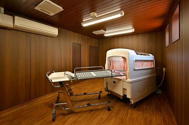 介護浴槽、最新の機械入浴設備を完備。全てのお部屋で、個浴対応が可能です。