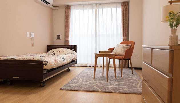 | 居室設備 | 介護ベッド・エアコン・クローゼット・カーテン・照明器具・トイレ・洗面台・緊急コール等 |