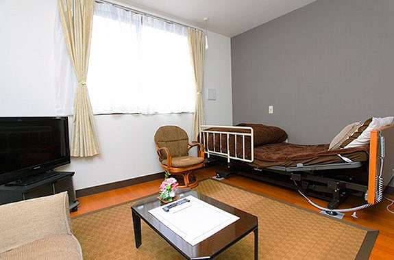 | 居室設備 | フローリング・フラットフロア・引き戸式ドア・温水洗浄機能付きトイレ・車イス対応洗面化粧台・寝具一式・クローゼット・ナースコール・避難設備・防災設備・地上波アンテナ・IH対応ミニキッチン・浴室 |