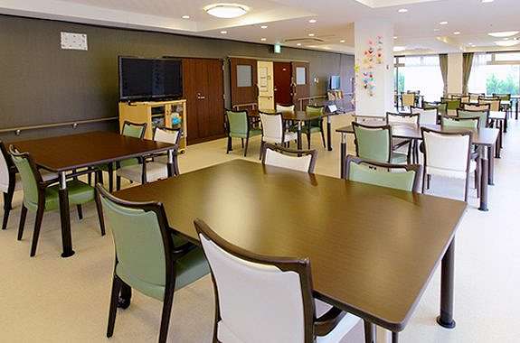 | 共有設備 | 玄関オール・風除室・食堂・喫煙室・食品庫・厨房室・リネン庫・スタッフルーム・汚物室・機械浴室・介護浴室・共有トイレ・車イス用トイレ・洗濯室・寝台用エレベーター・ナースコール・防災設備・避難設備・放送設備 |