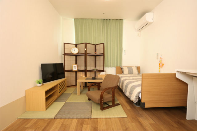 | 居室設備 | 介護用ベット(寝具を含む)・エアコン・ナースコール・トイレ・洗面台・クローゼット・照明 |