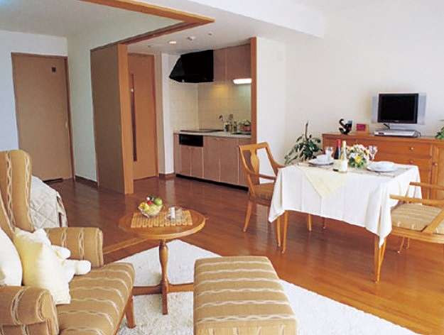 | 共有設備 | 玄関ホール、風除室、フロント、ロビー、リビングルーム、ダイニングルーム(食堂)、談話室、多目的室、和室、応接室、来客用宿泊施設、展望施設、スタッフルーム、一般浴室、大浴場、機械浴室、サウナ、共用トイレ、車椅子用トイレ、洗面室、エレベーター、寝台用エレベーター、車椅子対応のリフトカー、ナースコール、各室インターホン設備(ナースコールとは別)、防災設備、異常監視システム、放送設備、テラス、ウッドデッキ、駐車場、バイク置き場、駐輪場、囲碁、将棋、麻雀台、レストラン、自動販売機、理美容室、メールボックス |