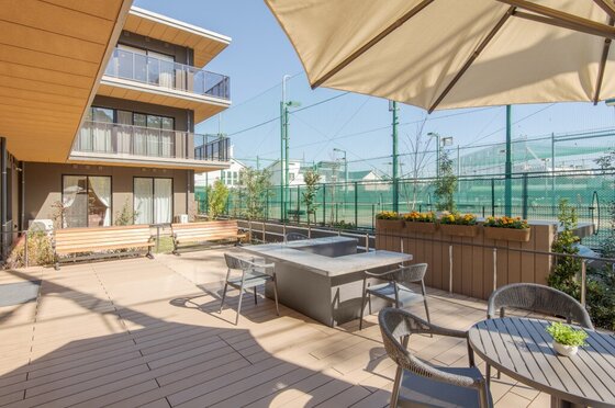 充実した共有設備・コミュニティースペースは、開放的で広々とした1階グランドダイニング(イベントなどさまざまな用途にも対応)、交流の場となる各階のラウンジ、緑豊かな屋上ガーデンテラスなど、魅力的で洗練されたスペースを備えています。