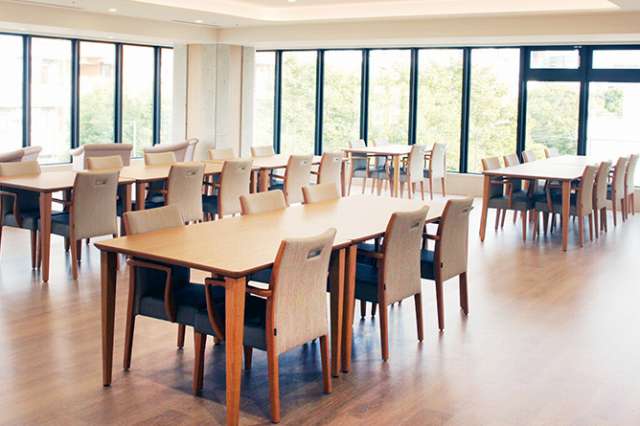 ロビー、応接室、さくらホール、機能訓練室、浴室(特浴)、コミュニティールーム( 地域交流スペース)、ゲストルーム、食堂、健康管理室、理美容室、ファミリールーム(家族団らん室)、ガーデンテラス |