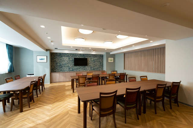 エントランスホール、リビング&ダイニング(食堂)※1、機能訓練室、個人浴室、特別浴室、ヘルパーステーション、健康管理室、ファミリールーム兼ヘアーサロン(理美容室)、応接室、リビング 、ランドリー、ルーフデッキ、駐車場 ※1食事だけでなくイベント・レクリエーション等、日常生活上多目的に使用。 |