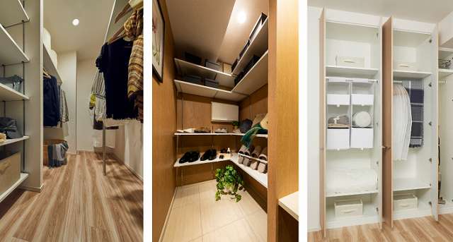 収納力を誇るウォークインクロゼットやシューズインクロゼットに加え、クロゼット、物入など、住まいの随所に使い勝手の良い収納スペースを設置しました。衣服や靴、鞄、家電製品などを効率的に整理・整頓でき、スッキリとゆとりある空間を叶えます。