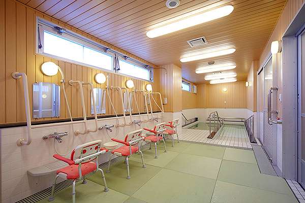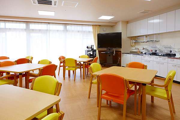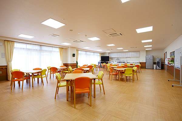 食堂兼機能訓練室、浴室、特別浴室、共用トイレ、談話コーナー、バルコニー、エレベーターホール、エレベーター、健康管理室、相談室、エントランスホール、洗濯室 |