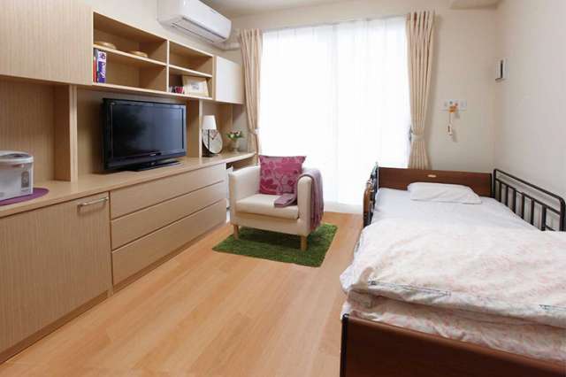 | 居室設備 | エアコン、照明、カーテン、緊急コールボタン、電動介護ベッド、洗面化粧台、車椅子対応トイレ、物入、テレビ・電話配線 等 |