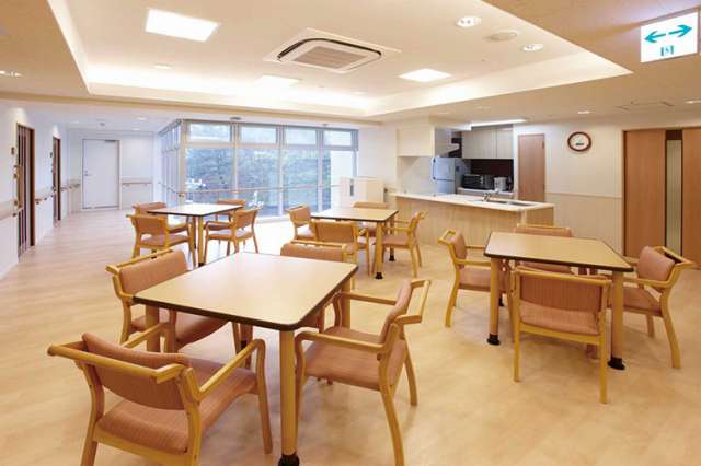 | 共有設備 | フロント、ロビー、ゲストルーム(宿泊時有料)、ダイニングルーム、食堂兼機能訓練室コーナー、エレベーター、共用トイレ、洗濯室、一時介護室、健康管理室、浴室(機械浴室・個浴)、厨房、ルーフバルコニー 等 |