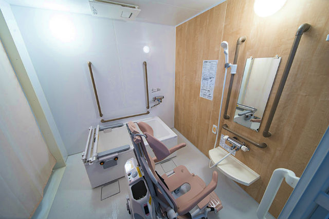 24時間介護資格を持ったスタッフが常駐しており様々な介護サービスが提供できます。また、特殊浴槽(寝たままや座ったままでも入れる入浴機器)など設備も充さらに詳しく
