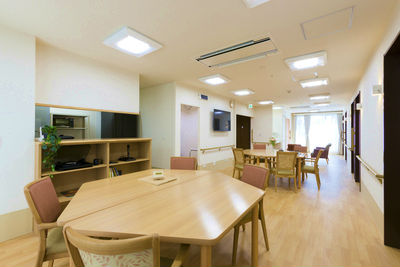 近くには公園やスーパーマーケットがあり、日光や四季を感じながらの散歩や日常生活に必要な買い物を職員と一緒に行うことができます。また、住み慣れた地域での生活を継続していただくため、地域社会との交流を大切にし、自宅での暮らしの延長となるような環境づくりを行っています。様々な交流などを軸に、地域や世代を超えた社会とのつながりを活用し、笑顔が絶えない「たのしい家」づくりを目指してまいります。