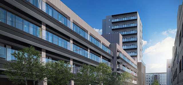 屋上庭園やドッグラン、地域交流スペースのほか、クリニックやコンビニなどが併設される複合型施設です。