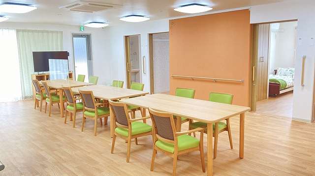 | 居室設備 | 緊急通報装置, テレビ回線, エアコン, クローゼット, 照明器具, 電動介護ベッド, カーテン, 寝具, 車椅子対応洗面化粧台, チェスト |