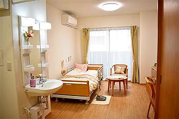 | 居室設備 | 防災カーテン、緊急コール、介護専用電動ベッド、車いす対応洗面台、温水洗浄トイレ、エアコン、収納 |