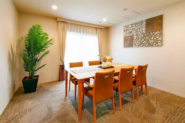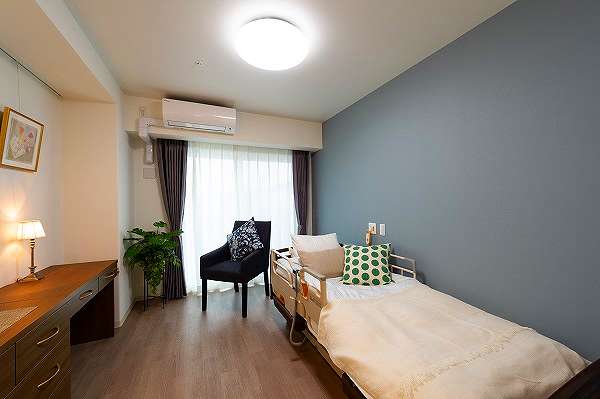 | 防火・消化設備 | 介護用電動ベッド(寝具付)、ナースコール、車いす対応洗面台、温水洗浄機能付トイレ、チェスト、クローゼット、デスク、メモリーボックス、カーテン(レース・ドレープ)、エアコン |