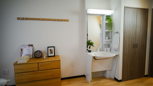 | 居室設備 | 介護ベッド・エアコン・クローゼット・カーテン・照明器具・トイレ・洗面台・緊急コール等 |