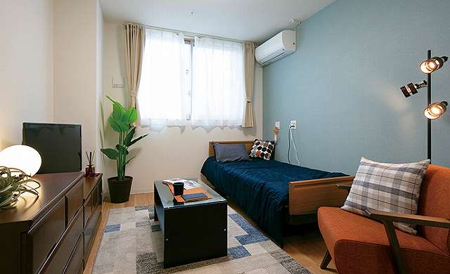 | 居室設備 | 温水洗浄機付トイレ・洗面所・緊急通報装置・テレビ回線・外線電話回線有り・エアコン・照明器具・カーテン |