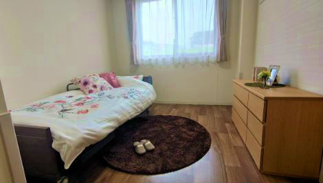 | 居室設備 | 介護ベッド(低床3モーター式)、エアコン、防炎カーテン、チェスト、収納、照明、温水洗浄機能付トイレ、洗面、スタッフコール |