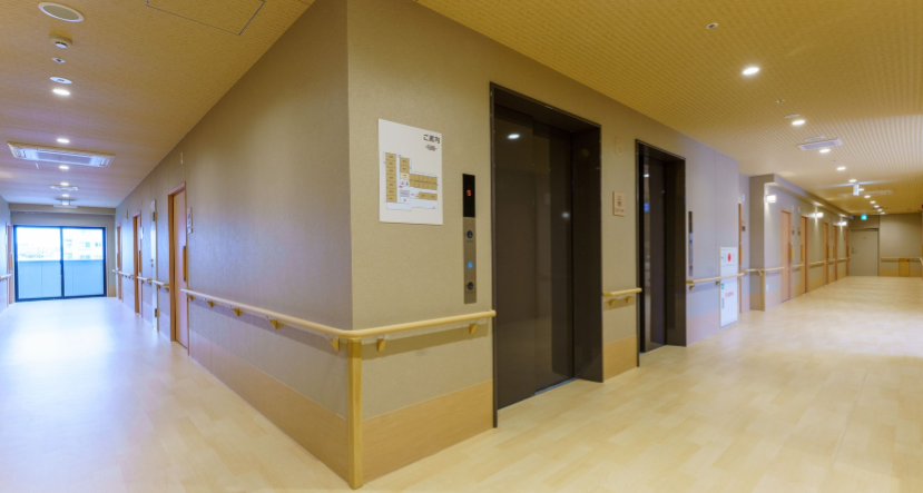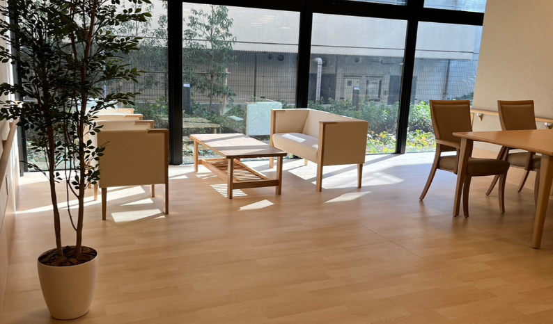 | 居室設備 | 冷暖房、収納、ナースコール、洗面台、温水洗浄機能付きトイレ、照明、感知器、スプリンクラー |
