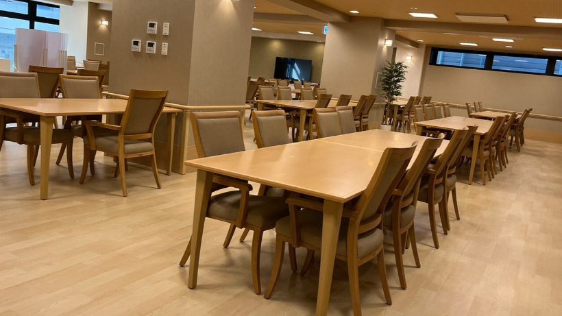 | 共有設備 | 食堂、ダイニング(1ヶ所)、機能訓練室、大浴場、機能浴室、一般浴室(4ヶ所)、談話室(4ヶ所)、健康管理室、相談室(2ヶ所)、洗濯室、エレベーター(2基、ストレッチャー対応)、自販機、トイレ(6ヶ所)、避難設備、防災設備、駐輪場、駐車場、AED完備 |