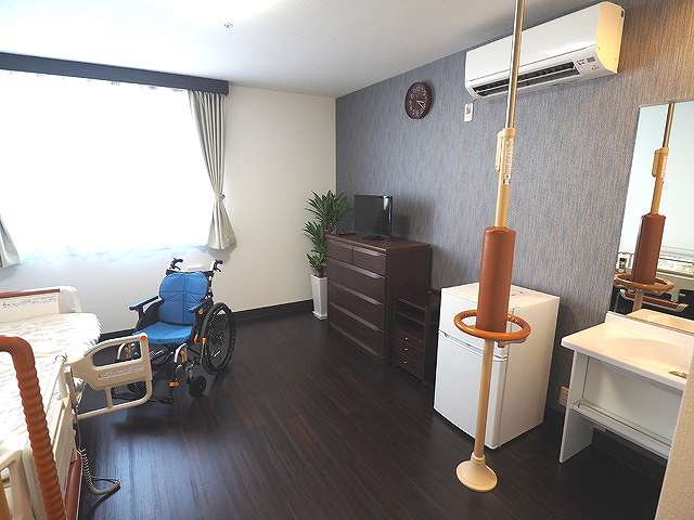 | 居室設備 | トイレ、車いす対応洗面台、収納、エアコン、照明器具、ナースコール、カーテン、時計、ごみ箱 |