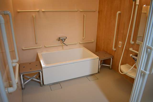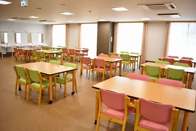| 共有設備 | 食堂兼機能訓練室、浴室(一般浴・機械浴・個浴)、ヘルパーステーション、健康管理室、機能訓練コーナー兼談話コーナー、談話コーナー兼図書コーナー、理容室、相談室、事務室、洗濯室、トイレ、エレベーター |