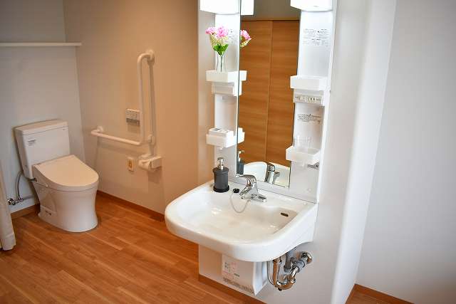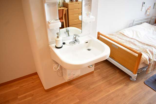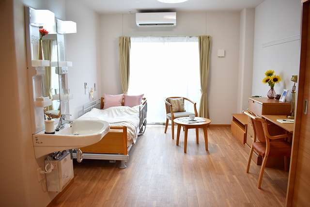 | 居室設備 | スプリンクラー、防炎カーテン、緊急コール、介護用電動ベッド、車いす対応洗面台、温水洗浄トイレ、エアコン、収納 |