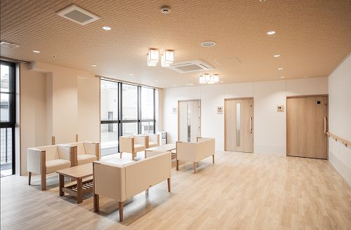 グレー基調の壁に木製のルーバーを組み合わせたモダンな外観、木目調で明るく心安らぐ内装デザイン、高齢者の方が生活しやすいバリアフリー構造など、過ごしやすい環境をご提供しています。