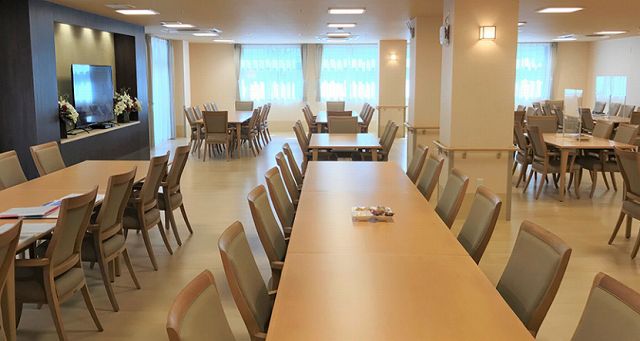 | 共有設備 | 食堂、ダイニング(2ヶ所)、機能訓練室、大浴場、機能浴室、一般浴室(1ヶ所)、健康管理費、相談室(1ヶ所)、談話室(1ヶ所)洗濯室、エレベーター(2基、ストレッチャー対応)、自販機、トイレ(6ヶ所)、避難設備、防災設備、駐車場、駐輪場、AED完備 |