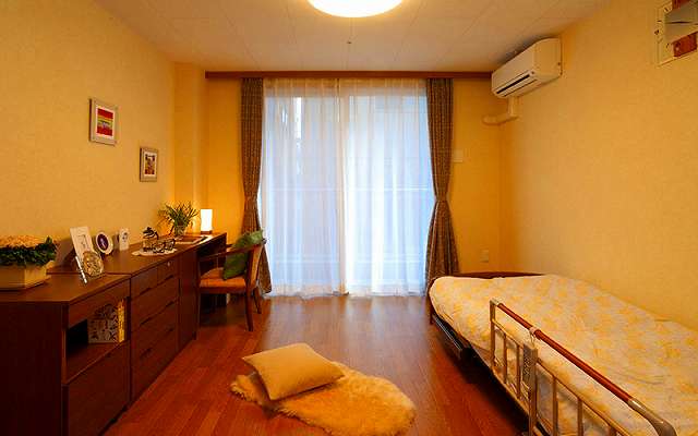 | 居室設備 | 介護用電動ベッド、エアコン、温水洗浄機能付トイレ、洗面台(温水)、ナースコール(寝室/トイレ)、収納設備(大型クローゼット/チェスト等)、テーブル、椅子、カーテン、テレビ回線、電話回線 |