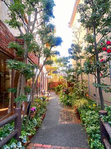 アンティークレンガと季節の草花に彩られた佇まいが特徴的。