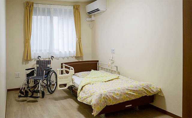 | 居室設備 | 介護ベッド、スタッフコール、ックローゼット、エアコン、防炎カーテン |