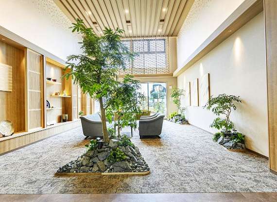エントランスや共有スペースには、屋内にいながら自然を感じる「バイオフィリア理論」に基づいたやすらぎの空間を演出する『COMORE BIZ』を導入。植物や自然音を取り入れた心地よい空間づくりを行っています。 詳細はこちら。