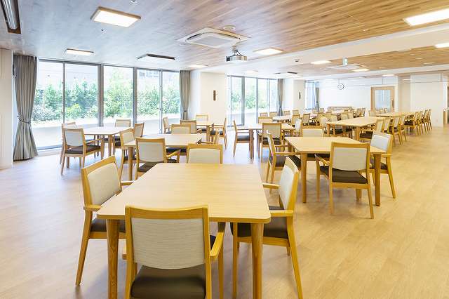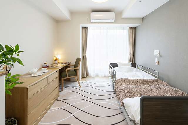 | 居室設備 | 介護用電動ベッド、寝具、冷暖房、カーテン、クローゼット、トイレ(全居室完備、洗浄機付)、温水器付洗面所、照明、見守りセンサー、消防設備(自動火災報知設備、スプリンクラー)、テレビ回線、ナースコール(2カ所/トイレ・ベッド) |