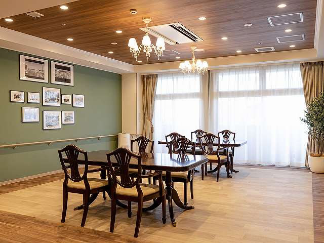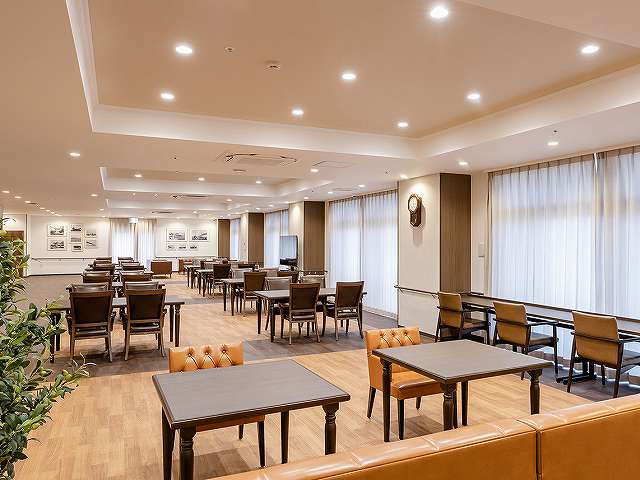 施設内は明るく開放感のある食堂やご家族様とくつろげる談話室など、お身体の状態に配慮しながら自由に好きなことを楽しめるよう、多彩な共用スペースを設けております。また、季節の移り変わりを感じ、思い出が甦るような年間行事の数々を計画しております。ご入居者様もスタッフも一緒になり、なごやかなひとときをお楽しみいただけます。
