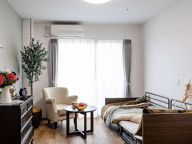 | 居室設備 | エアコン、福祉対応型温水洗面台、洗浄機能付きトイレ、介護ベッド、緊急用コールボタン、収納 |